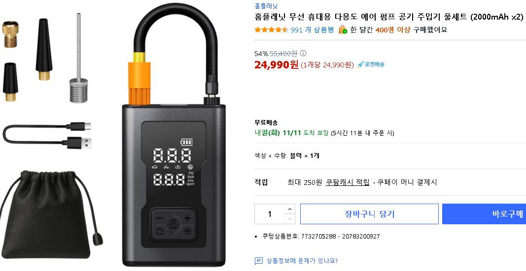 ■예시2 : 홈플래닛 휴대용 에어 펌프 공기 주입기