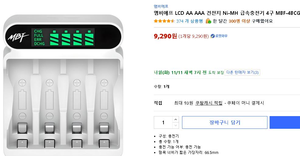 ■ 예시1 : 엠비에프 AA,AAA 건전지 충전기, MFB-4BCG
