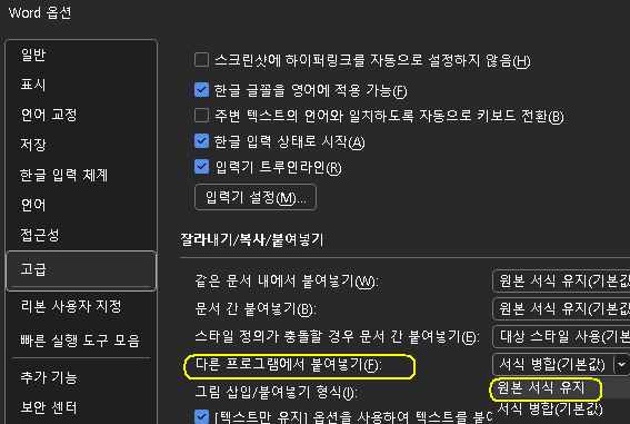 복붙시 서식 유지는 2021 버전까지만 유효.